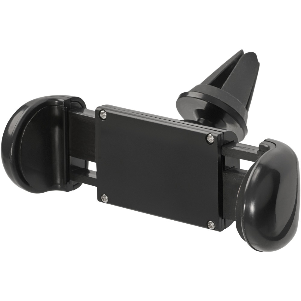 Telefontartó, amely az autó műszerfalának szellőzőnyílására rögzíthető, és biztonságos helyzetben tartja a mobiltelefont. Minden telefonnal kompatibilis. 360 fokban elforgatható. Emblémázás: Tamponnyomás