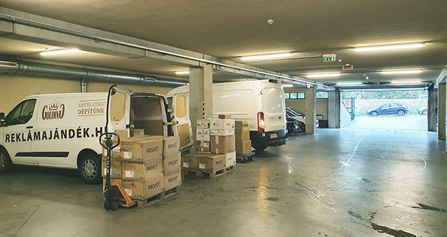 teremgarázs, árukiadó: