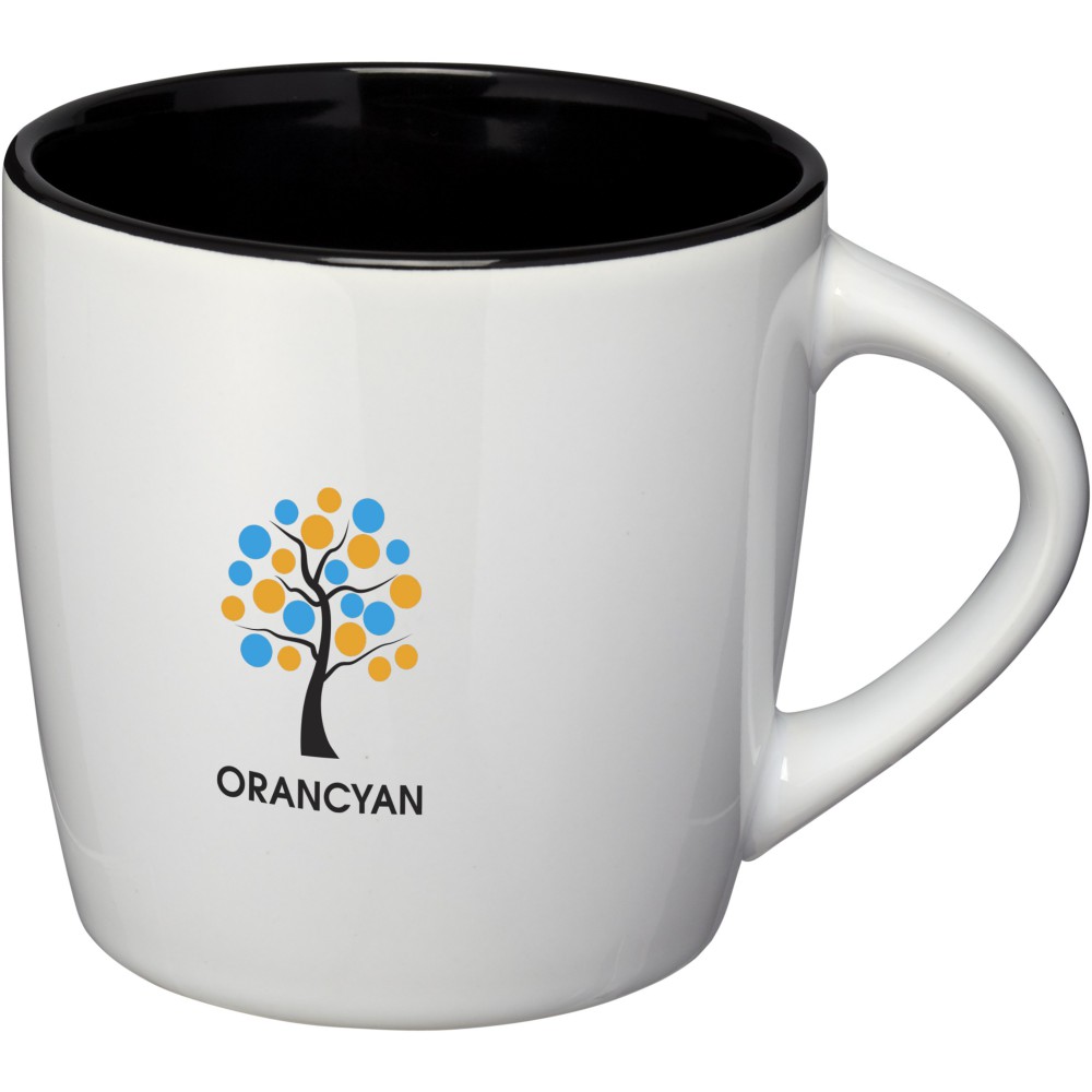 Aztec kerámia bögre fényes külső felülettel és színes belsővel. Az EN12875-1 szabványnak megfelel. Csomagolása fehér doboz. Nem szivárgásmentes. Szénsavas italokkal is használható. Mosogatógépben mosható és mikrohullámú sütőben történő melegítésre alkalmas. Űrtartalom: 350 ml. Emblémázás: Bögredekor