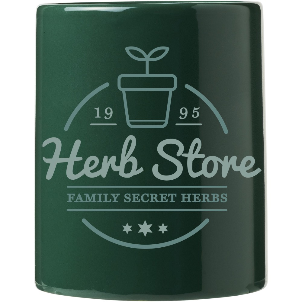 Klasszikus 330 ml-es kerámia bögre. Nem szivárgásmentes. Szénsavas italokkal is használható. Mosogatógépben mosható és mikrohullámú sütőben történő melegítésre alkalmas. Fehér kartondobozban szállítjuk. Emblémázás: Bögredekor