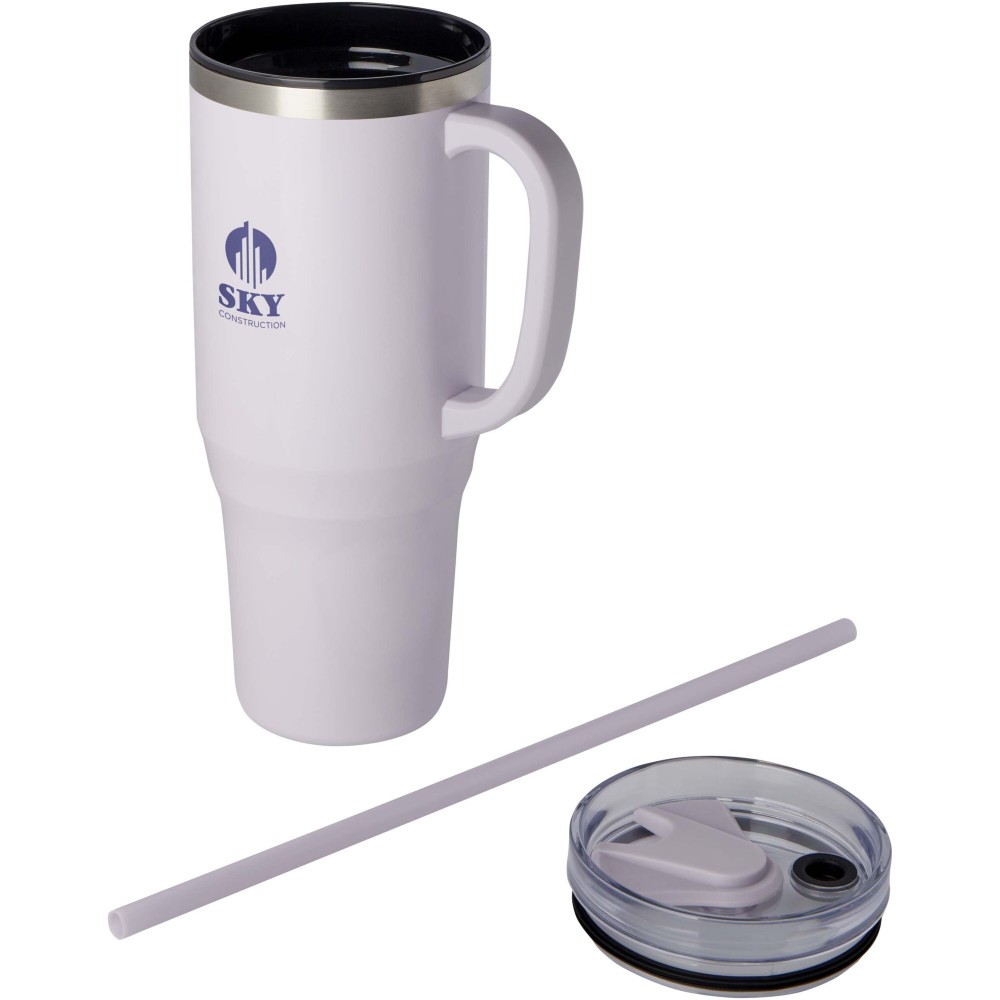 A Melbourne pohár tartós, duplafalú kialakítással rendelkezik, amely bármilyen környezetben képes az italokat melegen vagy hidegen tartani. A pohár belső fala újrahasznosított műanyagból készült, míg a külső fala RCS tanúsítvánnyal rendelkező újrahasznosított rozsdamentes acélból. A pohár 1200 ml-es űrtartalommal rendelkezik, amely stílusosan biztosítja a napi hidratáltságot. Cseppmentes, nyomófedeles kialakítással rendelkezik, két nyílással és forgatható zárómechanizmussal. Élelmiszeripari minőségű újrahasznosított szívószállal szállítjuk. Kézi mosogatás javasolt. Stanley hasonmás. Emblémázás: Gravírozás, Körszita, Tamponnyomás