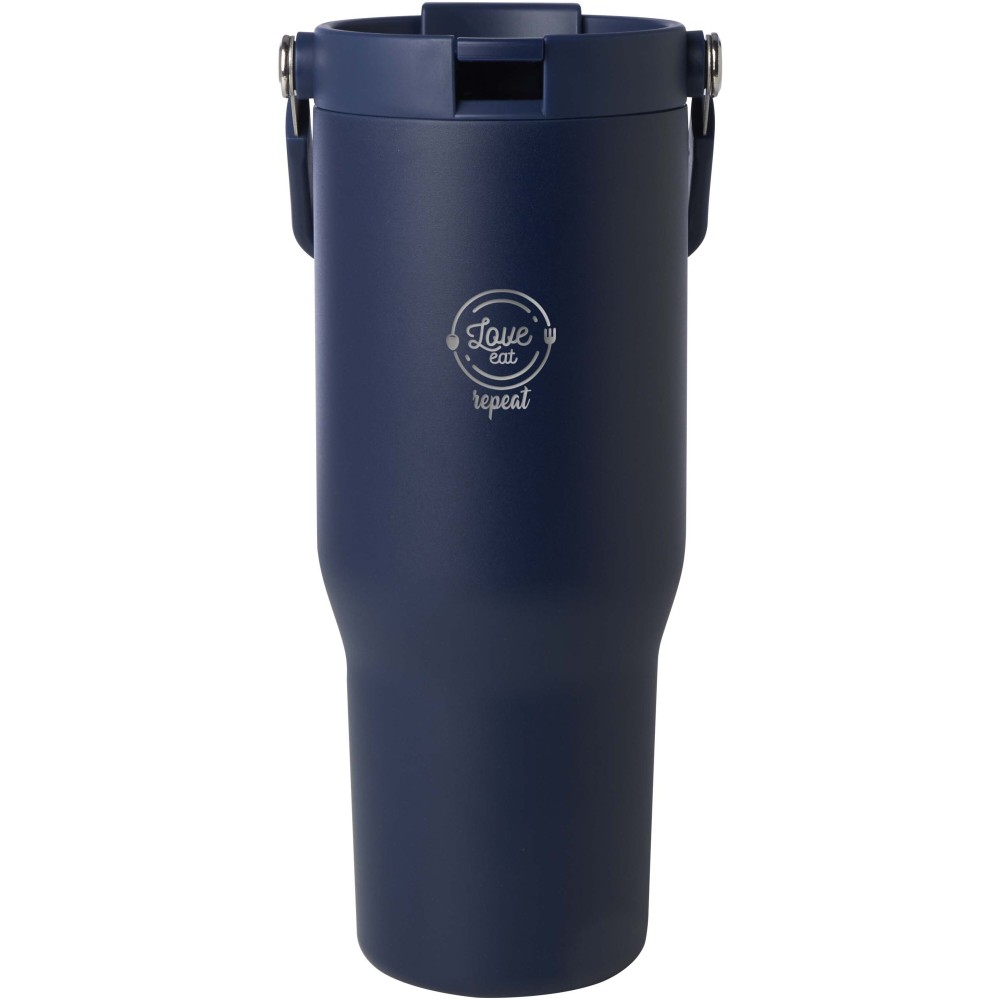 A Bronx 900 ml-es termoszbögre RCS tanúsítvánnyal rendelkező rozsdamentes acélból, dupla falú vákuumszigeteléssel és réz bevonattal készült. A tető kétfunkciós kialakítással rendelkezik: összecsukható ivószárral a kényelmes kortyoláshoz, valamint felpattintható nyílással és lehajtható fogantyúval az egyszerű hordozhatóság érdekében. A legtöbb autós pohártartóba illeszkedik. Újrahasznosított kartondobozban szállítjuk. Emblémázás: Gravírozás, Tamponnyomás