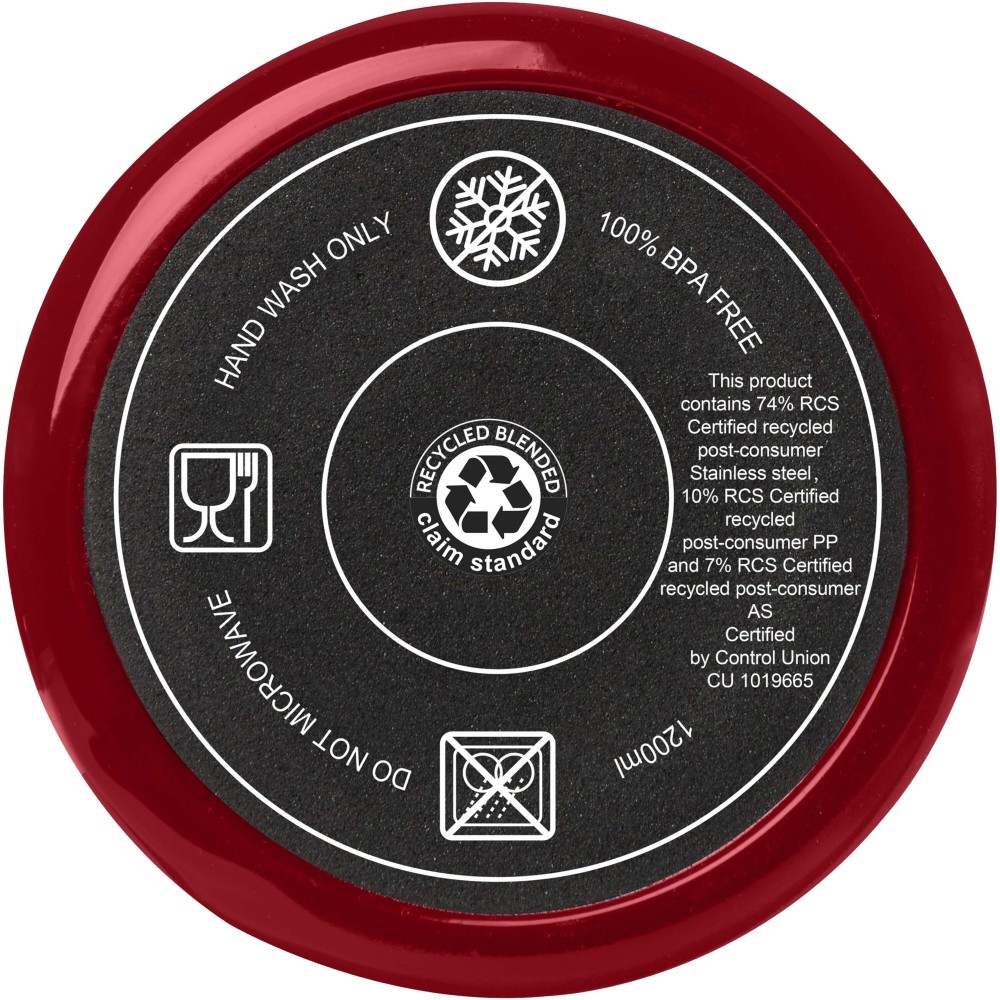 A Melbourne pohár tartós, duplafalú kialakítással rendelkezik, amely bármilyen környezetben képes az italokat melegen vagy hidegen tartani. A pohár belső fala újrahasznosított műanyagból készült, míg a külső fala RCS tanúsítvánnyal rendelkező újrahasznosított rozsdamentes acélból. A pohár 1200 ml-es űrtartalommal rendelkezik, amely stílusosan biztosítja a napi hidratáltságot. Cseppmentes, nyomófedeles kialakítással rendelkezik, két nyílással és forgatható zárómechanizmussal. Élelmiszeripari minőségű újrahasznosított szívószállal szállítjuk. Kézi mosogatás javasolt. Stanley hasonmás. Emblémázás: Gravírozás, Körszita, Tamponnyomás