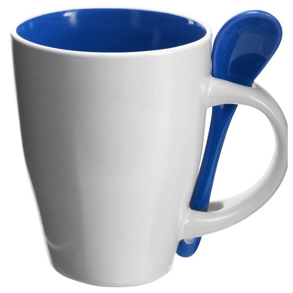 Kerámia bögre kiskanállal, 260 ml. Mosogatógépbe és mikrohullámú sütőbe helyezhető. A dobozt tartalmazza az ár. Emblémázás: Bögredekor