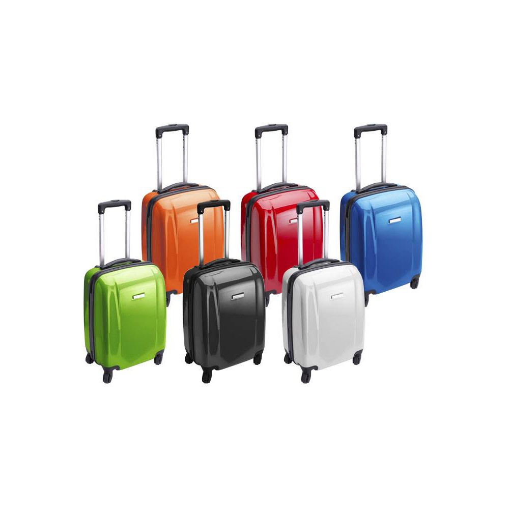 Keményfedelű bőrönd PC/ABS műanyagból, 4 körbeforgó kerékkel, beépített számzárral. Emblémzásra alkalmas fémlappal, ami fixen a terméken van. Emblémázás: Gravírozás