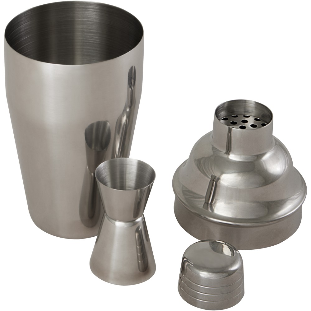 Újrahasznosított rozsdamentes acélból készült koktélkeverő, amely fenntarthatóbb alternatívát jelent a hagyományos koktélkeverőkkel szemben. Az újrahasznosított rozsdamentes acélból készült koktélkeverő használatával úgy élvezheti kedvenc koktéljait, hogy közben pozitív hatást gyakorol a környezetre. A shaker mérete: 21,2 x 8,8 cm. Jigger mérete: 3,5 x 4,1 x 7 cm. Mosogatógépbe vagy mikrohullámú sütőbe tenni nem alkalmas. Újrahasznosított zacskóba csomagolva, majd újrahasznosított kraftpapír dobozba helyezve. Emblémázás: Gravírozás, Tamponnyomás