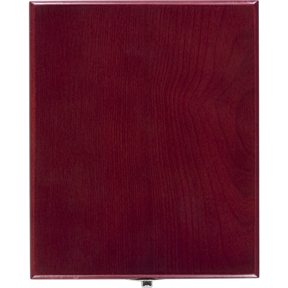 Boroskészlet fa díszdobozban. Üvegdugó, cseppfogó, borhőmérő, pincérbicska. Emblémázás: Gravírozás, Tamponnyomás, UV nyomtatás