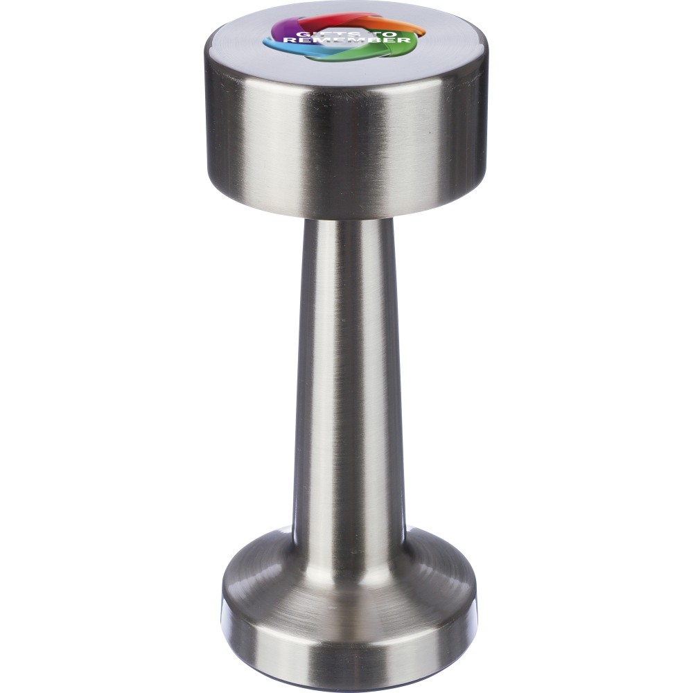 Asztali lámpa 24 LED-del és három világítási móddal (fehér, természetes és meleg). A különböző módok a lámpa tetején lévő érzékelő érintésével változtathatóak. 800 mAh-s akkumulátorral és 1 m hosszú, C-típusú töltőkábellel. A lámpa fénymódonként szabályozható, és az alján ki/bekapcsoló gombbal rendelkezik. Csomagolása barna papírdoboz. Fém, ABS. Emblémázás: Gravírozás