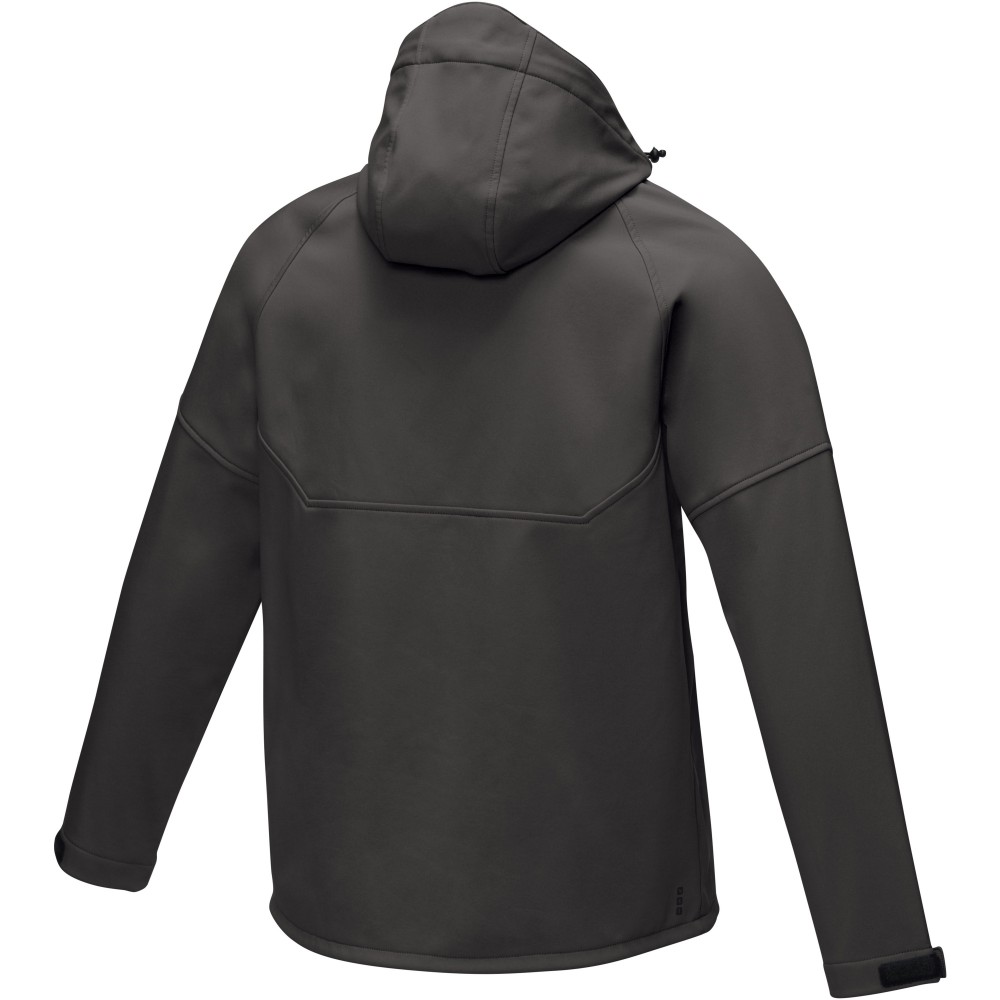Softshell dzseki fenntartható GRS újrahasznosított poliészterből (a cipzárok is). 8000 mm vízállóság 2000 g/m2 légáteresztő képesség. 3 rétegű anyag: szövött, TPU, mikropolár. Tépőzáras, állítható kézelő. Félhold alakú betét a nyaknál. Szövött 80% GRS tanúsított újrahasznosított poliészter, 18% poliészter és 2% elasztán, 280 g/m2. Préselt mikropolár 70% GRS tanúsított, újrahasznosított poliészter és 30% poliészter,. Emblémázás: Hímzés, Szitanyomás