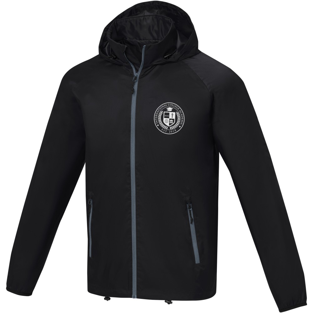 Könnyű férfi dzseki. Egyedi belső emblémázási lehetőségek. Letéphető, kivágható címke a címke nélküli kényelemért. 500 mm vízálló. Raglan ujjak. Behajtható kapucni. Fordított cipzár. Elülső zsebek cipzárral. Belső zseb. Állítható húzózsinór megállítóval az alsó szegélyben és a kapucniban. 280T ripstop 100% nylonból, 72 g/m2, bélés, 210T taft 100% poliészterből, 60 g/m2. Emblémázás: Hímzés, Szitanyomás