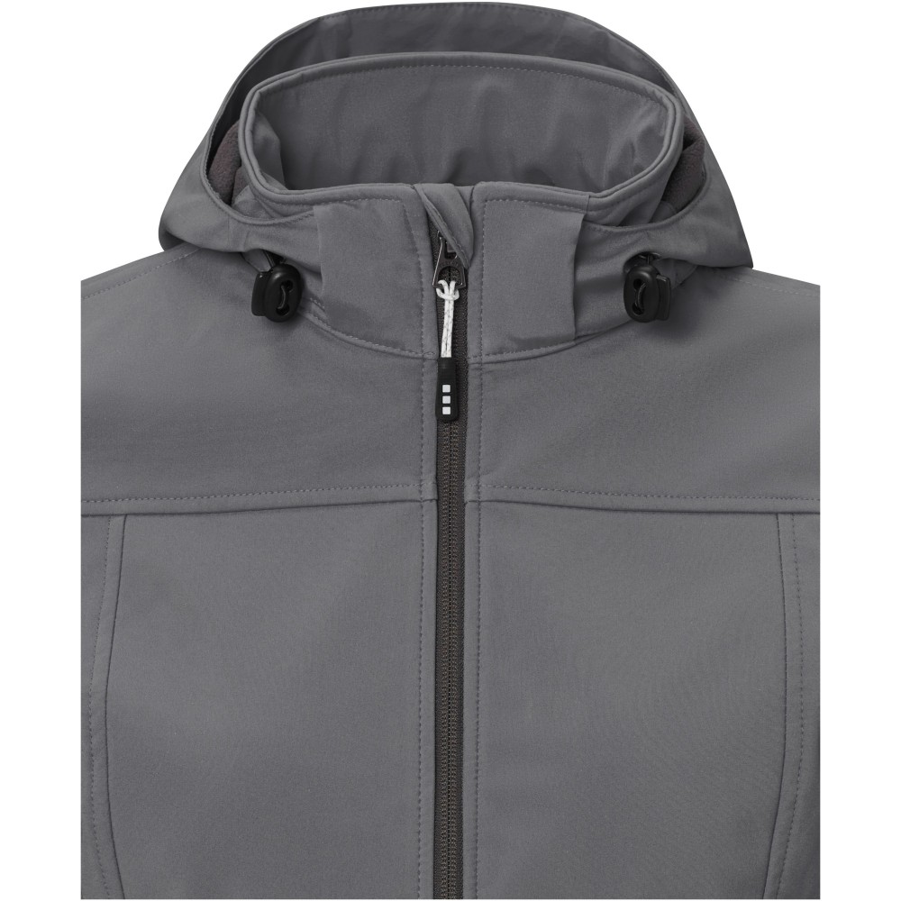 Normál szabásvonal, softshell anyag. Levehető kapucni rugalmas húzózsinórral és megállítógombbal. Fordított állású cipzárok. Tépőzárral állítható kézelő. Hátul fényvisszaverő logónyomat . 5000 mm-ig vízálló. 3000 mm-ig lélegző. 4 irányú sztreccs anyag. Szélálló. Könnyen megfogható cipzárhúzókák (póthúzókák antracit színben). 90% poliészter és 10% elasztán 100% mikropolárral préselve. 300 g/m2. Emblémázás: Hímzés, Szitanyomás