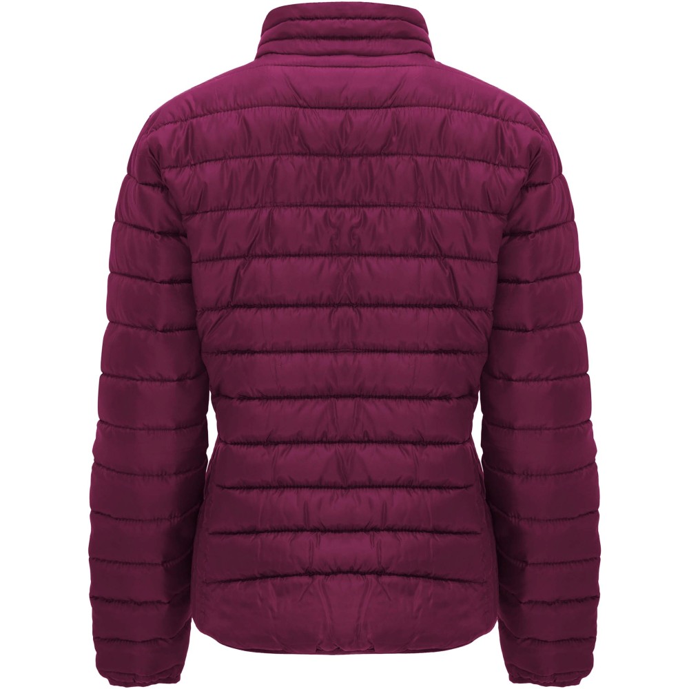 Női, karcsúsított, steppelt dzseki tollszerű tapintású töltettel, tasakkal. Fordított cipzárak, színben illeszkedő állvédővel és cipzárral. Két cipzáras elülső zseb. Gumis szegély a galléron, a kézelőn és az aljon. Kontrasztos színű bélés. Könnyű és összehajtható ruhadarab. Vízálló. Szélálló. 100% poliészter, 290 g/m2. Bélés és töltet: 100% poliészter. Emblémázás: Hímzés