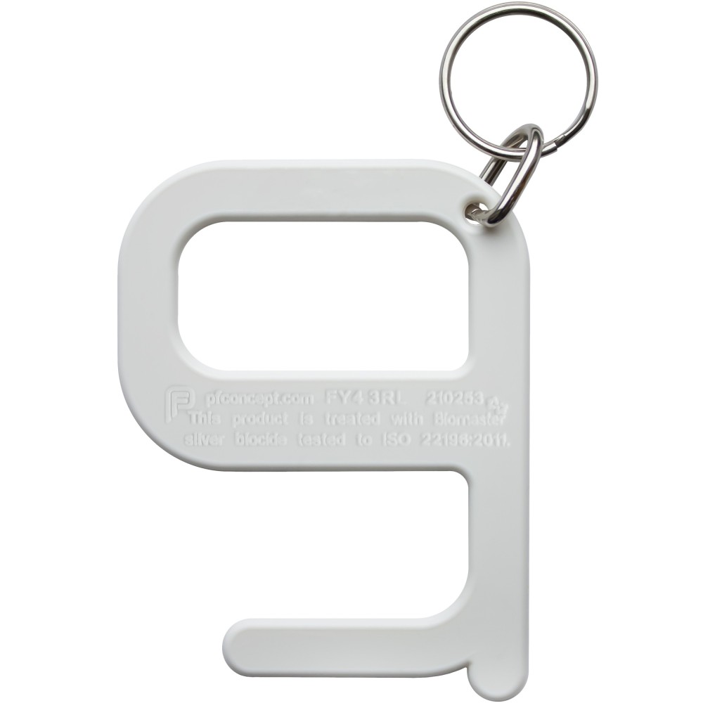 Egyszerű, de hatékony, higiénikus eszköz, amely a használója számára lehetőséget biztosít, hogy a kilincseket, kapcsolókat, gombokat ne kelljen közvetlenül megérintenie. Erős műanyagből készült a tartósság érdekében. Kulcstartóra akasztható, így mindig kéznél van. Anyagának gyártása során Biomaster antimikrobiális technológiát használtak, mely védelmet biztosít az ártalmas mikrorganizmusokkal szemben. Összetétele: 98% ABS műanyag és 2% antibakteriális adalék. Minimális rendelhető mennyiség: 250 db. Emblémázás: Tamponnyomás