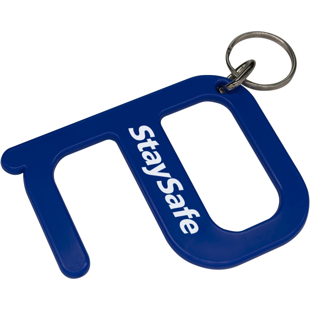 Egyszerű, de hatékony, higiénikus eszköz, amely a használója számára lehetőséget biztosít, hogy a kilincseket, kapcsolókat, gombokat ne kelljen közvetlenül megérintenie. Erős műanyagből készült a tartósság érdekében. Kulcstartóra akasztható, így mindig kéznél van. Anyagának gyártása során Biomaster antimikrobiális technológiát használtak, mely védelmet biztosít az ártalmas mikrorganizmusokkal szemben. Összetétele: 98% ABS műanyag és 2% antibakteriális adalék. Minimális rendelhető mennyiség: 250 db. Emblémázás: Tamponnyomás