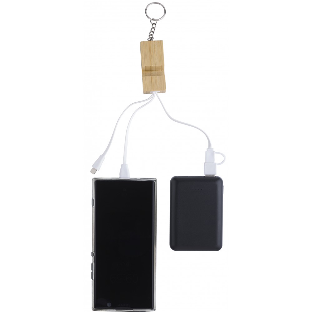Bambusz telefontartó töltőkábelekkel, barna (1015141-11): 1 db