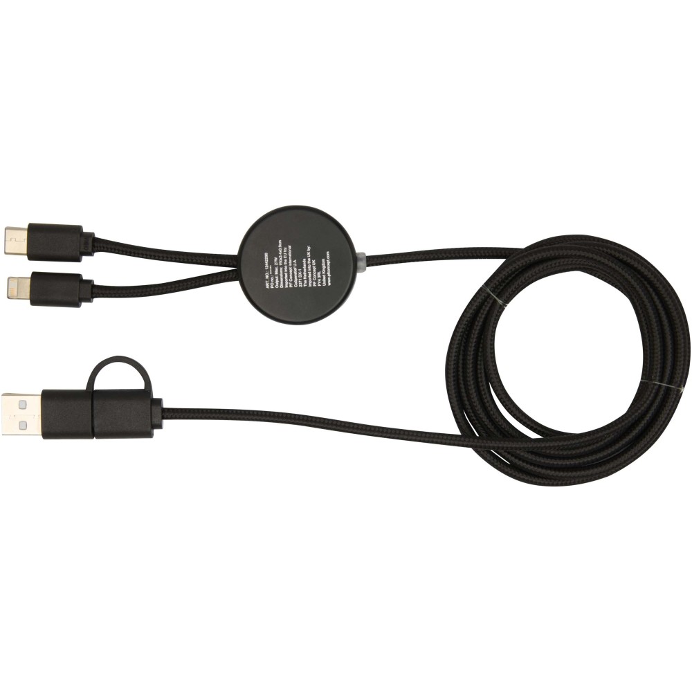 A Chechia 5 az 1-ben adat- és 27W-os gyorstöltő kábel újrahasznosított műanyagból készült, felelősen beszerzett bambusz díszítéssel. A kábel USB-A és Type-C bemeneti csatlakozókkal, valamint Type-C és Lightning/Micro USB kombinált kimeneti csatlakozóval rendelkezik. Az USB-A?USB-C kapcsolat maximális teljesítménye 27W, míg az összes többi kapcsolat maximális teljesítménye 15W. Kompatibilis a CarPlay és az Android Auto rendszerekkel. Akár otthon, az irodában vagy útközben használod, a Chechia kábel teljesítményt és stílust garantál. Kábel hossza: 30 cm. Emblémázás: Gravírozás, Tamponnyomás