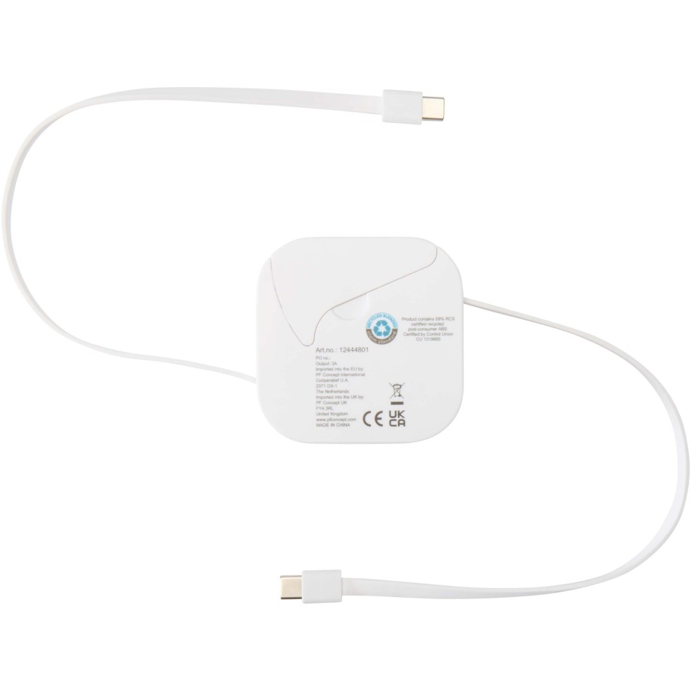 A Gloas egy mindent egyben töltő- és okostelefon-kiegészítő, amely újrahasznosított műanyagból készült. Visszahúzható, 100W teljesítményű USB-C gyorstöltő és adatátviteli kábellel rendelkezik, USB-A adapterrel, valamint 2 az 1-ben microUSB/Lightning adapterrel. Elég erős ahhoz, hogy a legtöbb laptopot, tabletet és okostelefont gyorsan feltöltse, a kábel pedig kompatibilis a CarPlay és Android Auto rendszerekkel is. Belsejében SIM-kártya kiszedő tű, egy nano SIM és egy microSD kártya tárolóhely, valamint beépített telefontartó található, ami ideális videónézéshez vagy videóhívásokhoz. Minden, amire szükséged lehet, egy kompakt kialakításban. Emblémázás: Matricázás, Tamponnyomás