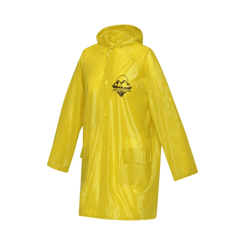 Az Ada esőkabát - ahol a stílus és a funkcionalitás találkozik esős időben. PVC külsővel készült, amely vízálló védelmet nyújt, így szárazon és kényelmesen tart. A gombok és a zsinór színben harmonizálnak a PVC külsővel, egységes és divatos megjelenést biztosítva. Az egy méretben kapható Ada esőkabát tökéletes társad esős napokon, praktikus és divatos megjelenést kínál, bármerre is mész. Anyaga: PVC műanyag. Emblémázás: Szitanyomás