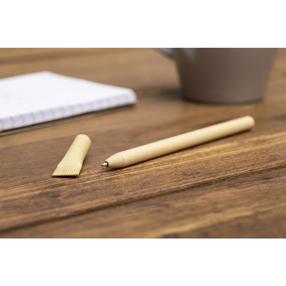 Golyóstoll újrahasznosított anyagból, kék tollbetéttel. Karton. Emblémázás: Tamponnyomás