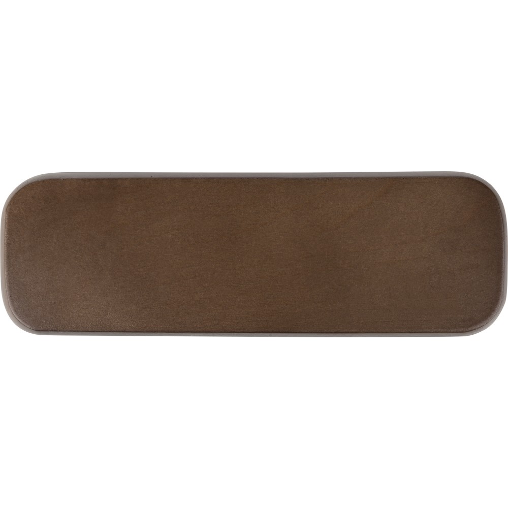 Diófából és rézből készült csavarós golyóstoll fém tollheggyel, klippel és díszítéssel, kék színű, német Dokumental tollbetéttel, megközelítőleg 1000 méter íráshosszúsággal. Juharfából készült dobozba és kartondobozba van csomagolva.