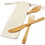 Bambusz evőeszköz készlet nemszőtt tartóban. Emblémázás: Szitanyomás