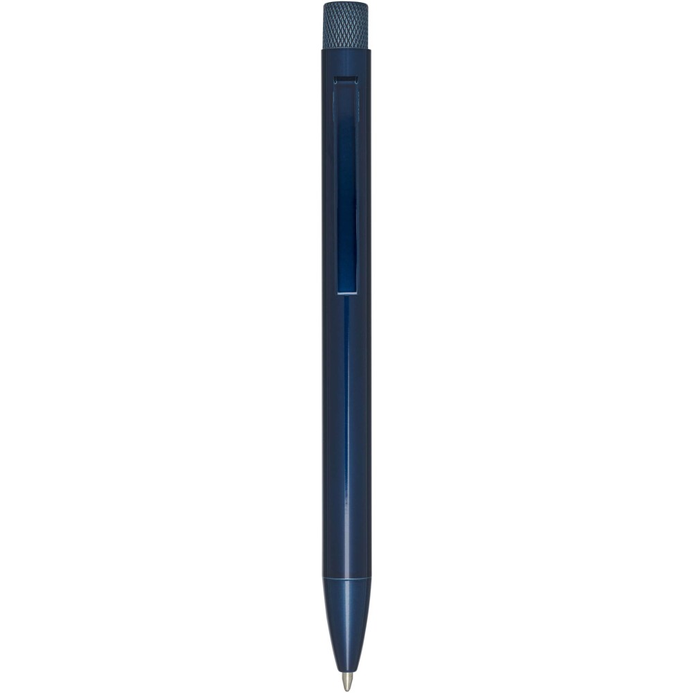 Golyóstoll színes festékszórt bevonattal. A gomb és a hegy sárgarézből, a tollteste újrahasznosított sárgarézből, a klipsz pedig vasból készült. Kék tollbetéttel. Írási hossz: 1000 méter. Hegyméret: 1,0 mm. Ajándékdobozban szállítjuk. Emblémázás: Gravírozás