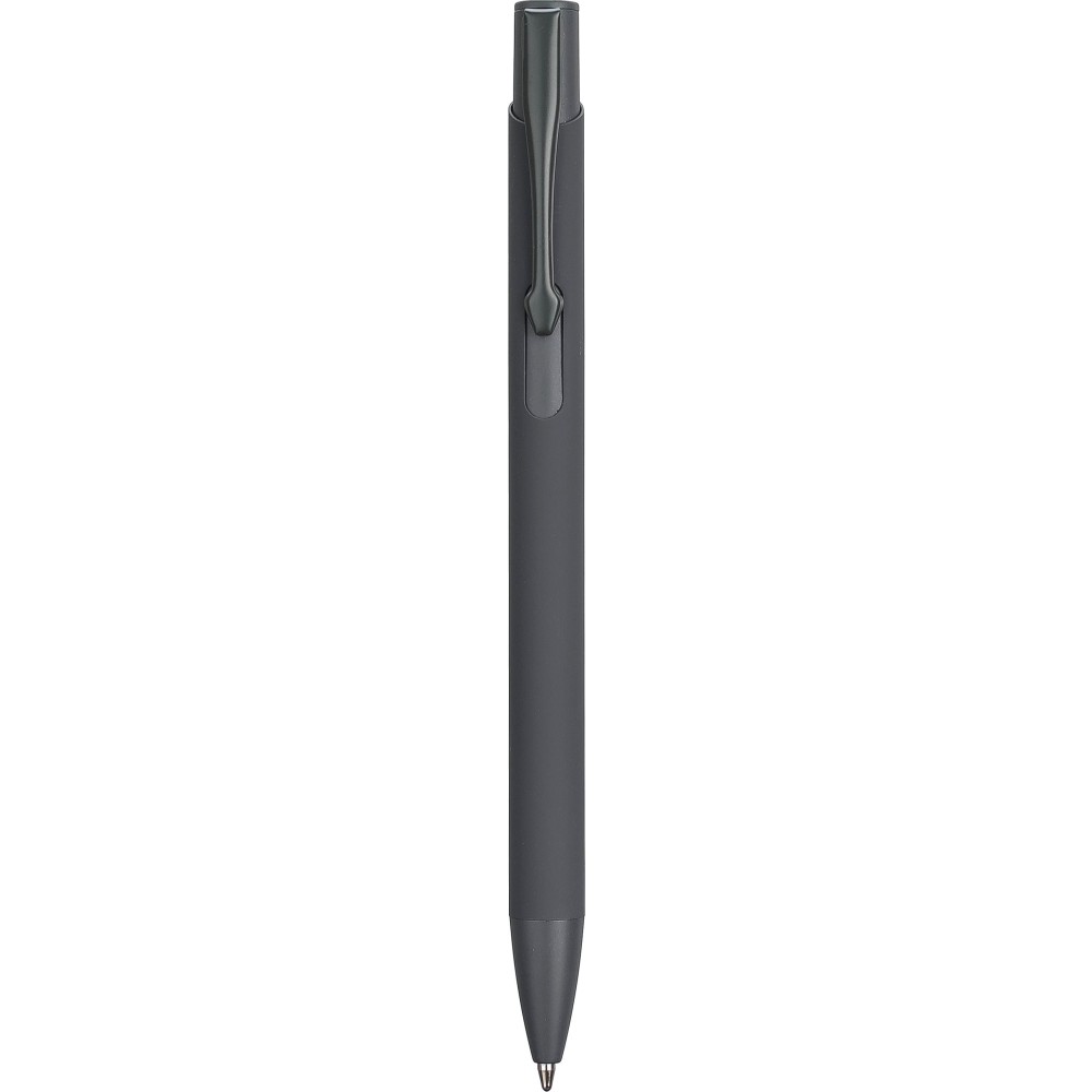 Újrahasznosított alumíniumból készült golyóstoll gumírozott bevonattal a tolltesten. A klipsz, a tollhegy és a nyomógomb azonos színű. A klipsz fémből, a tollhegy műanyagból készült. Kb. 800 méter íráshossz. Gravírozott újrahasznosított alumíniumra utaló logóval. Kék tollbetéttel. Emblémázás: Gravírozás
