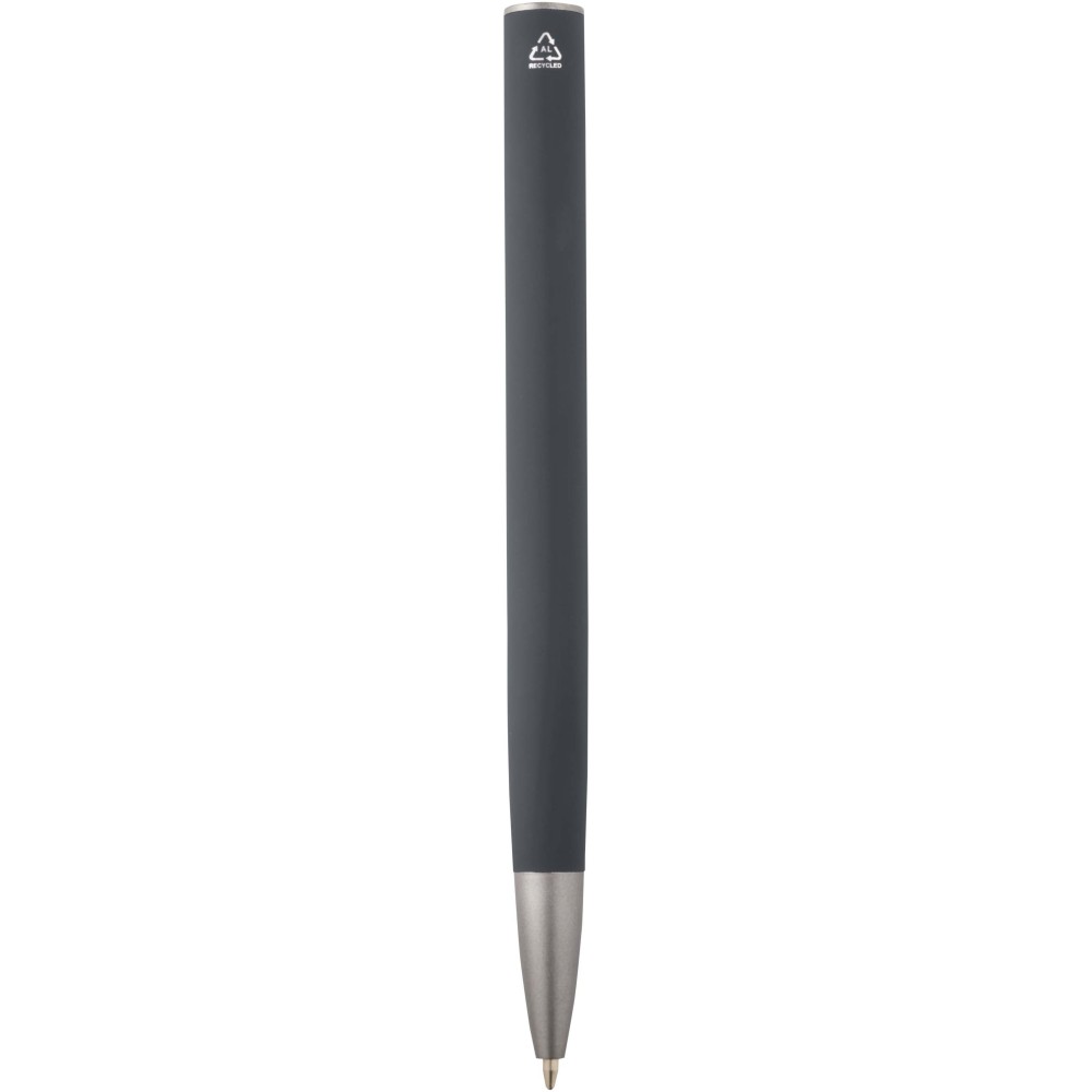 Golyóstoll újrahasznosított alumíniumból készült tolltesttel és sötétszürke matt bevonattal, ABS műanyagból készült klipsszel. Tinta színe: kék. Íráshossz: 800 méter. Tollhegy mérete: 1,0 mm. Emblémázás: Gravírozás
