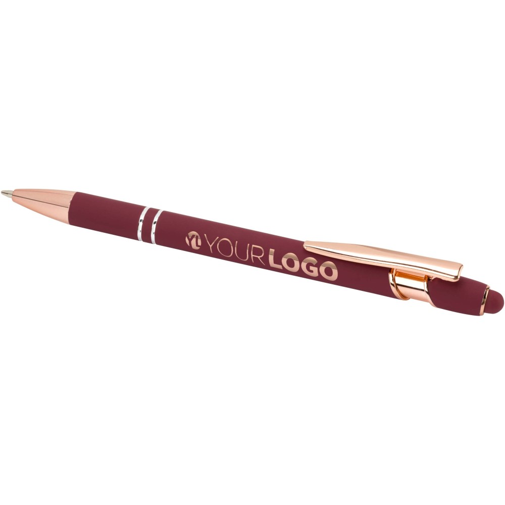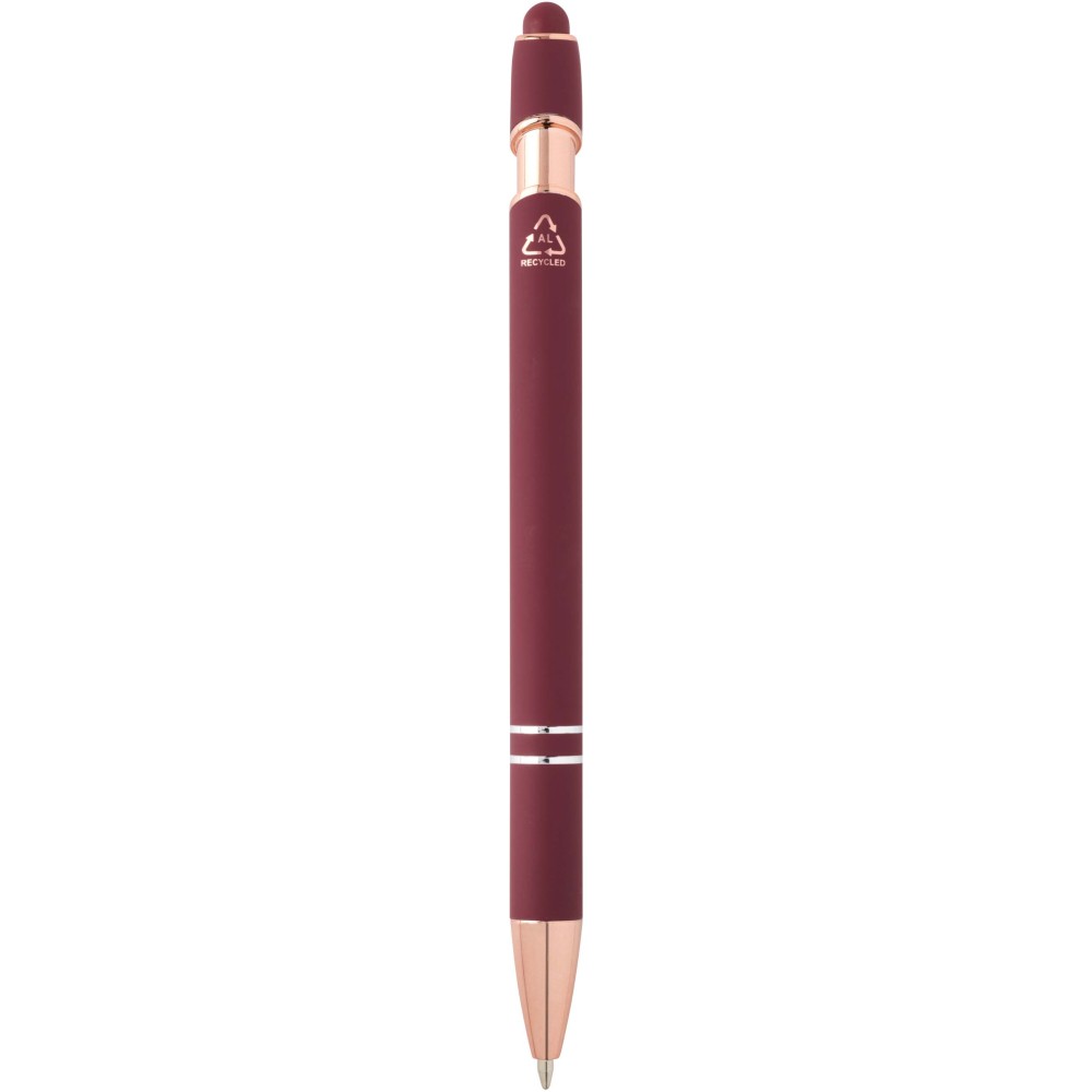 A Nanna golyóstoll rózsaarany bevonattal újrahasznosított alumíniumból készült tolltesttel és szilikon, érintőképernyős véggel rendelkezik. Az újrahasznosított alumínium csökkenti a hulladék mennyiségét a lerakókban, hozzájárul a természeti erőforrások megőrzéséhez és a károsanyag-kibocsátás mérsékléséhez. Tinta színe: fekete. Íráshossz: 800 méter. Tollhegy mérete: 1,0 mm. Emblémázás: Gravírozás, UV nyomtatás