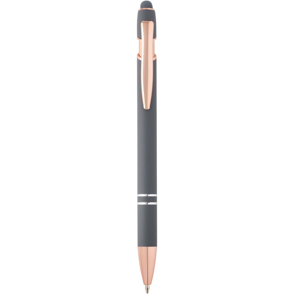 A Nanna golyóstoll rózsaarany bevonattal újrahasznosított alumíniumból készült tolltesttel és szilikon, érintőképernyős véggel rendelkezik. Az újrahasznosított alumínium csökkenti a hulladék mennyiségét a lerakókban, hozzájárul a természeti erőforrások megőrzéséhez és a károsanyag-kibocsátás mérsékléséhez. Tinta színe: fekete. Íráshossz: 800 méter. Tollhegy mérete: 1,0 mm. Emblémázás: Gravírozás, UV nyomtatás