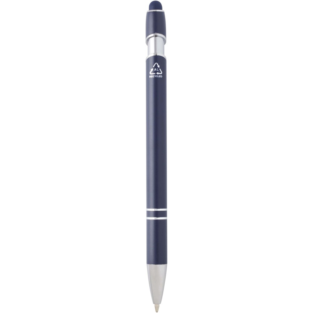 A Kish golyóstoll ezüst bevonattal újrahasznosított alumíniumból készült tolltesttel és szilikon, érintőképernyős véggel rendelkezik. Az újrahasznosított alumínium csökkenti a hulladék mennyiségét a lerakókban, hozzájárul a természeti erőforrások megőrzéséhez és a károsanyag-kibocsátás mérsékléséhez. Tinta színe: fekete. Íráshossz: 800 méter. Tollhegy mérete: 1,0 mm. Emblémázás: Gravírozás