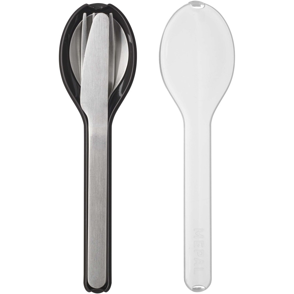 Ez az elegáns és praktikus Ellipse evőeszközkészlet egy kést, egy villát és egy kanalat tartalmaz, mindegyik rozsdamentes acélból készült. Az evőeszközök egy kompakt műanyag tartóban vannak. Mosogatógépben mosogatható. Emblémázás: Gravírozás, Tamponnyomás