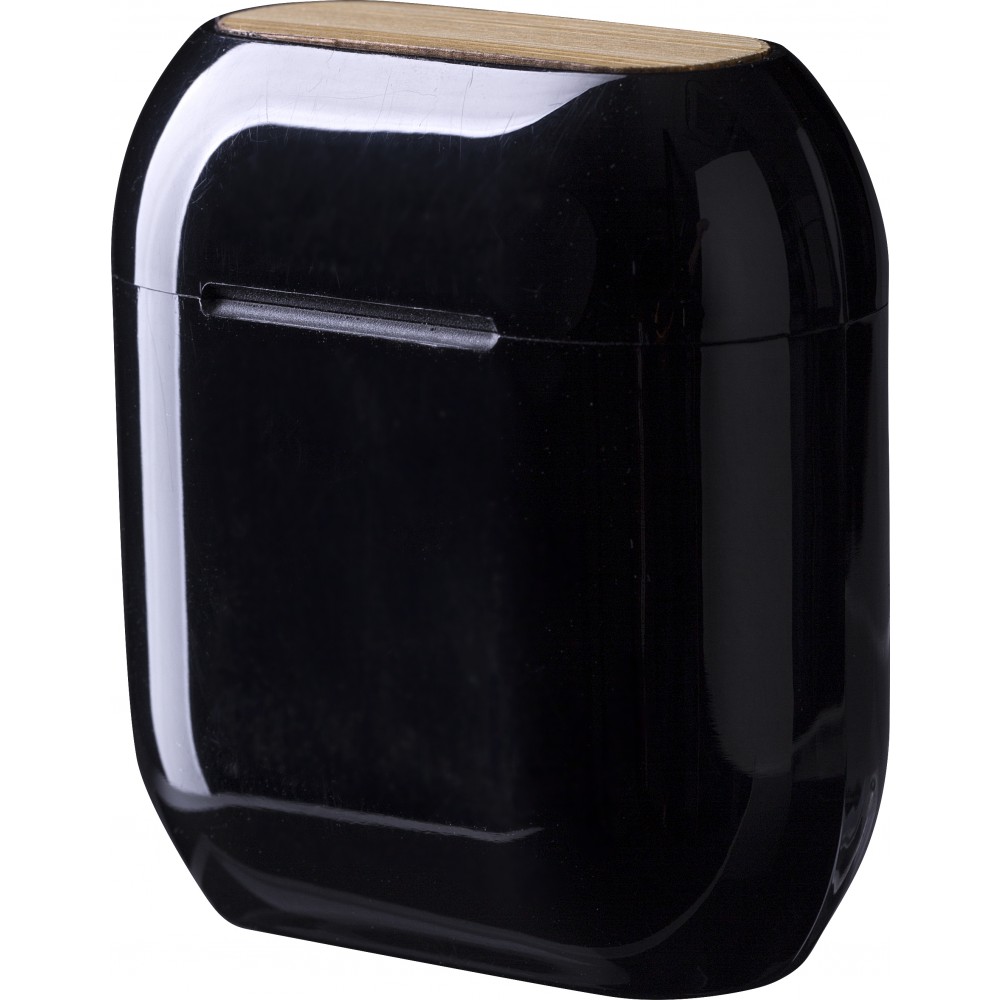 5.1 vezeték nélküli fülhallgató ABS anyagból, bambusz dekorációval a tetején. Fülhallgató kapacitása 30 mAh, tokja 200 mAh. 1 óra töltési idő, 6 óra lejátszási idő (zene), 4 óra lejátszási idő hívás funkcióban. Emblémázás: Tamponnyomás