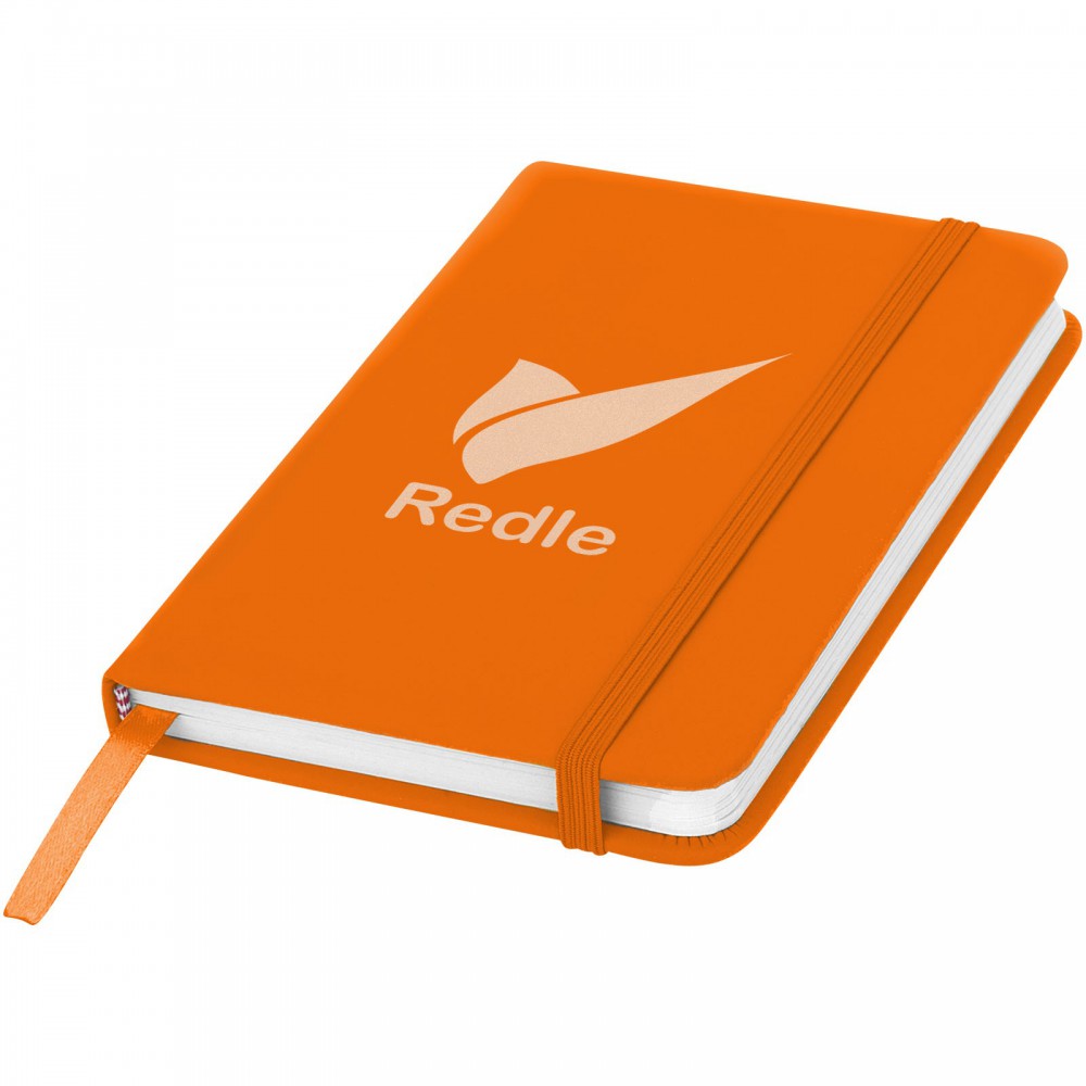 Spectrum A6 jegyzetfüzet színes fedéllel, jelölőszalaggal és gumipánttal, 96 vonalas lappal (60g/m2). PVC fedett karton. Emblémázás: Szitanyomás, Tamponnyomás, UV nyomtatás
