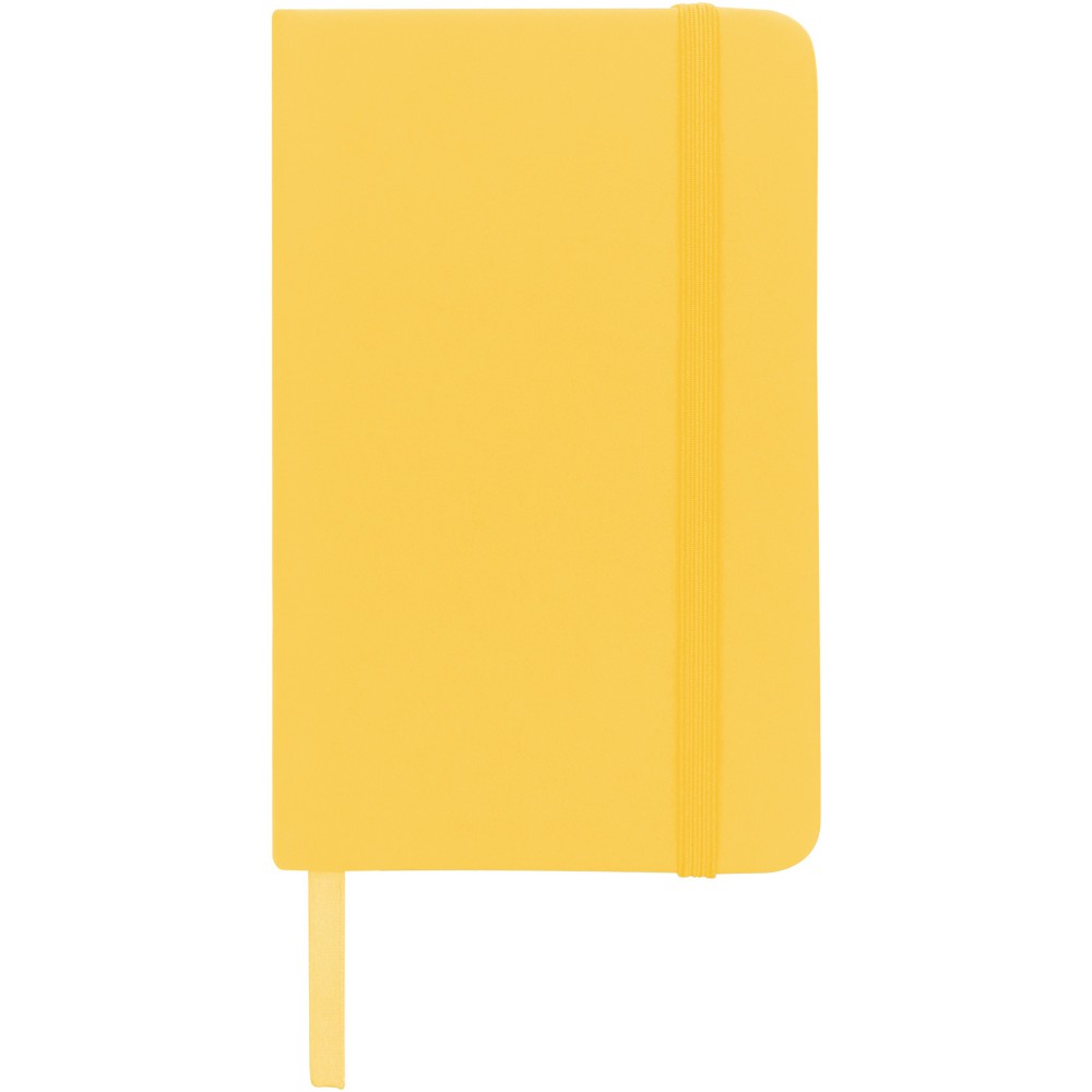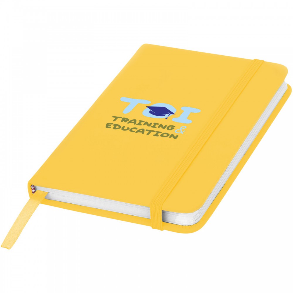 Spectrum A6 jegyzetfüzet színes fedéllel, jelölőszalaggal és gumipánttal, 96 vonalas lappal (60g/m2). PVC fedett karton. Emblémázás: Szitanyomás, Tamponnyomás, UV nyomtatás