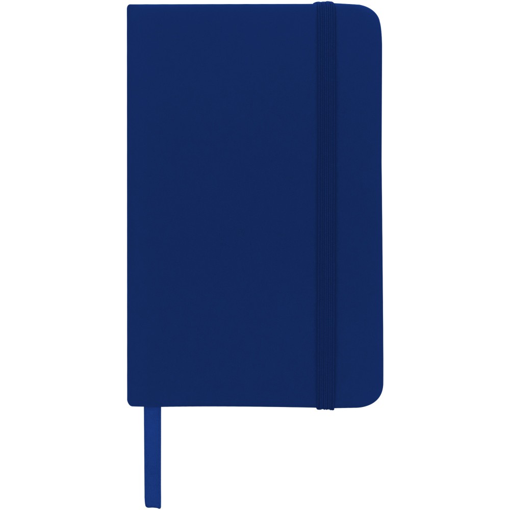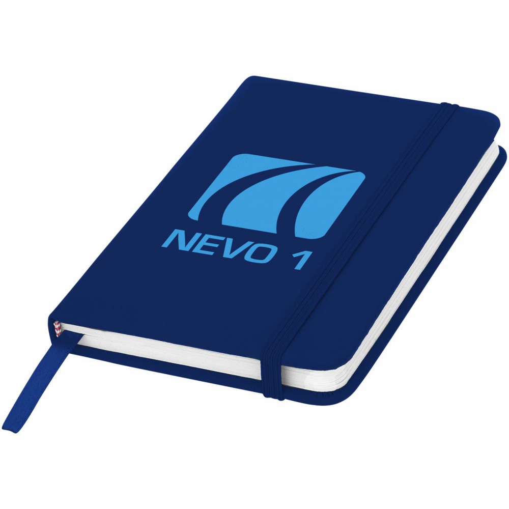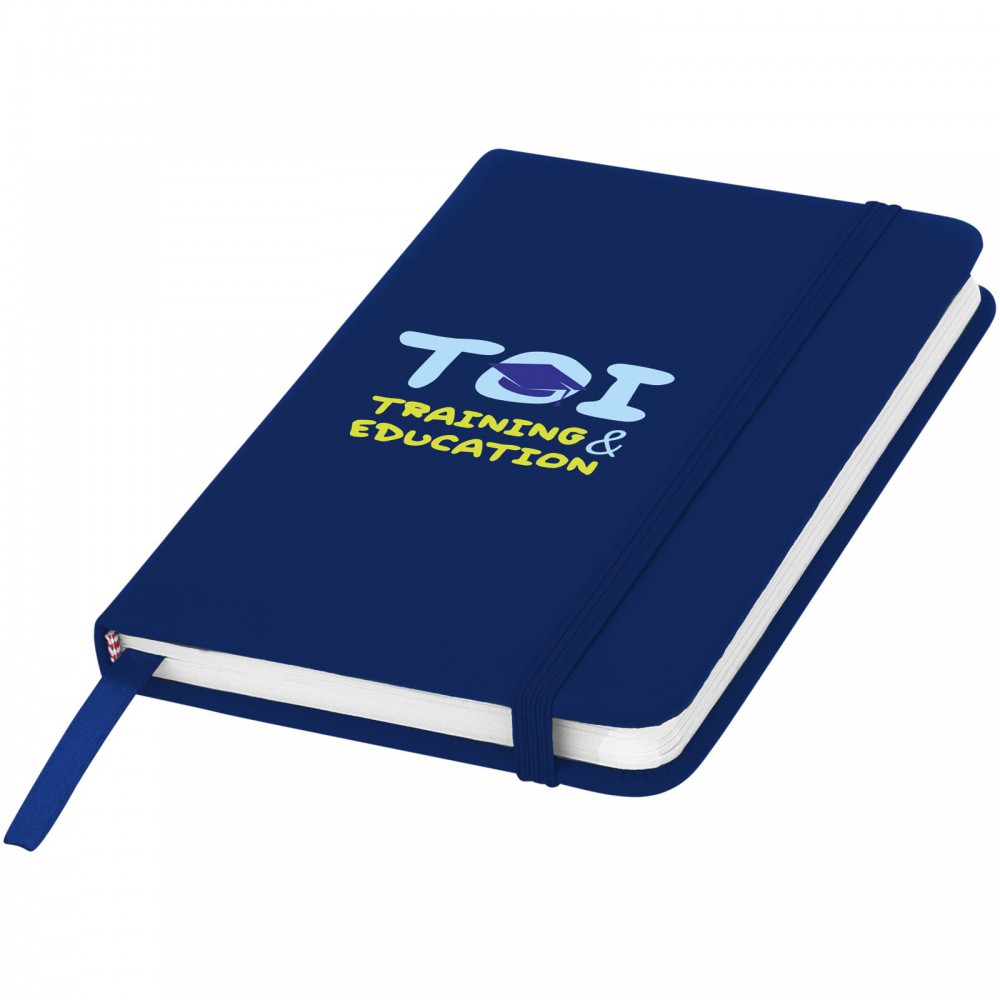 Spectrum A6 jegyzetfüzet színes fedéllel, jelölőszalaggal és gumipánttal, 96 vonalas lappal (60g/m2). PVC fedett karton. Emblémázás: Szitanyomás, Tamponnyomás, UV nyomtatás