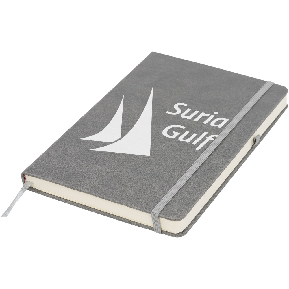 Színes füzet gumipánttal, könyvjelzővel, tollhurokkal. A hátsó borítóban tárolózseb. 128 krémszínű, vonalas lapot tartalmaz. Emblémázás: Szitanyomás, UV nyomtatás
