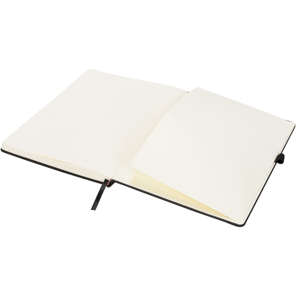 Színes füzet gumipánttal, könyvjelzővel, tollhurokkal. A hátsó borítóban tárolózseb. 128 krémszínű lapot tartalmaz. Emblémázás: Szitanyomás, UV nyomtatás