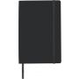 Puhafedelű, hajlékony borítójú füzet 80 vonalas lappal, a borító belsejében zsebbel, gumis záródással és könyvjelzővel. PU. Emblémázás: Tamponnyomás
