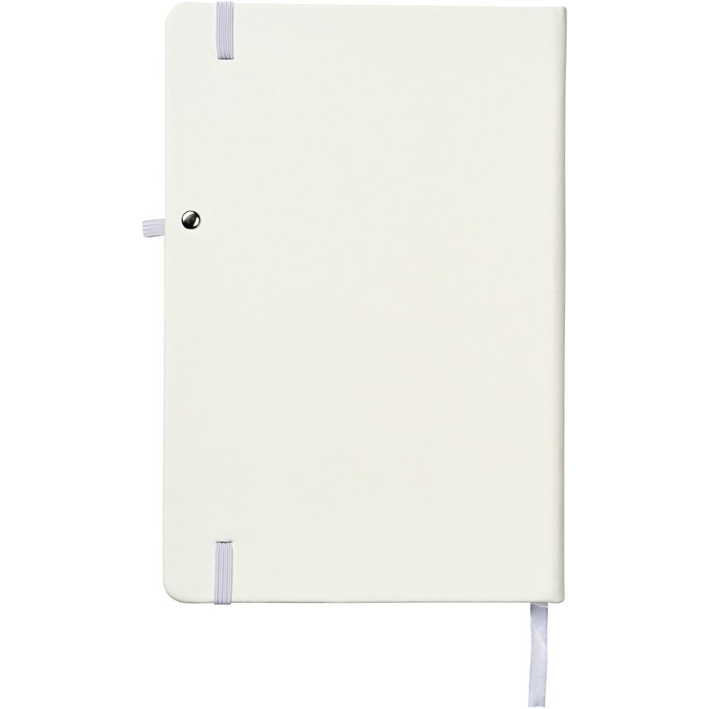 A5-ös füzet színben illeszkedő gumipánttal, tollhurokkal, jelzőszalaggal. 96 db 70g/m2 vonalas lap. Puha tapintású PU fedél. Emblémázás: Tamponnyomás, UV nyomtatás