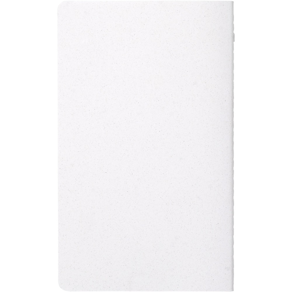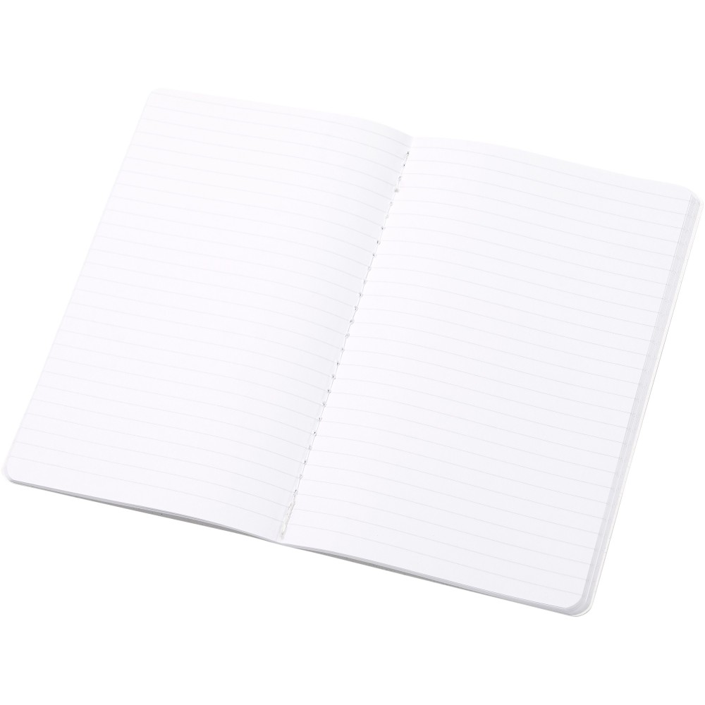 Könnyű és puha füzet. A borító felelősen előállított alapanyagokból készül. A barna borítás kávémaradványt (15%), míg a zöld borító olajbogyó-maradványanyagokat (15%) tartalmaz; mindkettő 40%-os fogyasztás utáni újrahasznosított hulladékkal kombinálva. A gerincet fehér öltések díszítik. 80 vonalas lapot tartalmaz, 70 g/m2 100%-ban felelős forrásból származó fehér újrahasznosított papírból. Olaszországban készült. Emblémázás: Tamponnyomás