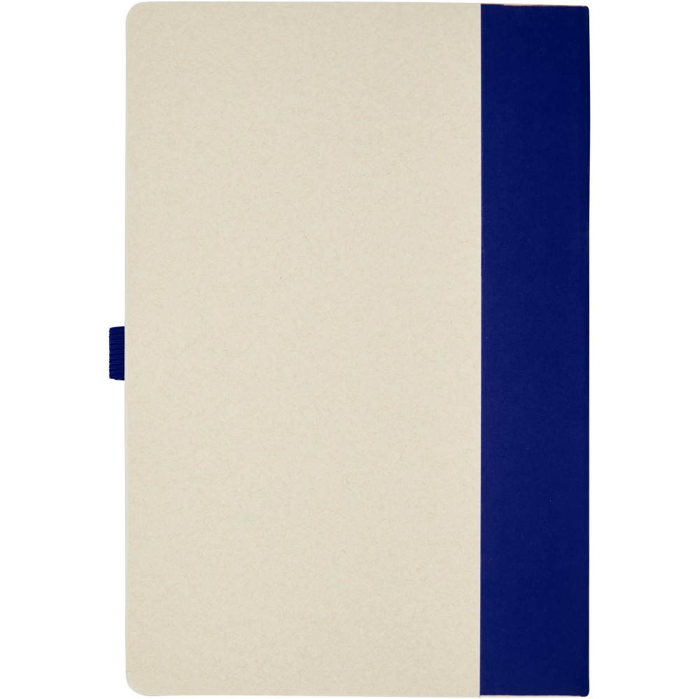 A5 méretű füzet és golyóstoll készlet. A jegyzetfüzet 80 vonalas lapot (80 g/m2) tartalmaz, amelyek újrahasznosított tejes kartondobozokból készülnek (akár 70%), színes papírgerinccel és egy tollhurokkal. A tollhurokban egy nyomógombos golyóstoll található a jegyzetfüzet színéhez illő színben. A toll teste ugyanabból az újrahasznosított anyagból készült, a gomb, a klipsz és a hegy pedig színes PLA műanyagból készült. A toll fekete tollbetéttel érkezik. A használt tejesdobozokat összegyűjtik, válogatják, feldolgozzák és papírrá alakítják, így a hulladékból hasznos termék készül. Emblémázás: Szitanyomás, Tamponnyomás