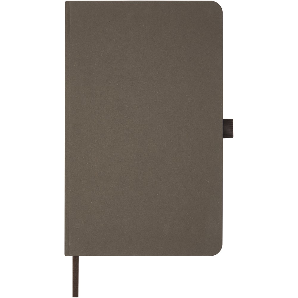 Könnyű, keményfedeles jegyzetfüzet a mindennapi jegyzeteléshez újrahasznosított alapanyagokból készült borítóval. A barna borító kávémaradványt, a zöld borító olajbogyó-maradványt, a fehér pedig kukoricamaradékot tartalmaz. 80 lap (70 g/m2) újrahasznosított fehér vonalas lapot tartalmaz. Emblémázás: Tamponnyomás