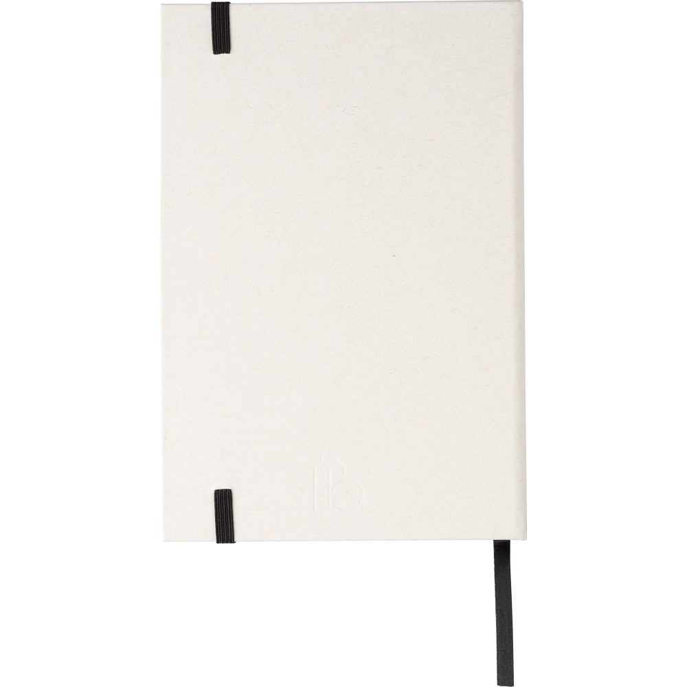 Újrahasznosított tejesdobozból készült A5-ös jegyzetfüzet 80 lappal, gumiszalaggal és könyvjelzővel. 70%-ban újrahasznosított tejeskartonból és 30%-ban újrahasznosított papírból készült. Igazolóbélyegző a füzet hátuljának az alján. Emblémázás: Tamponnyomás, UV nyomtatás
