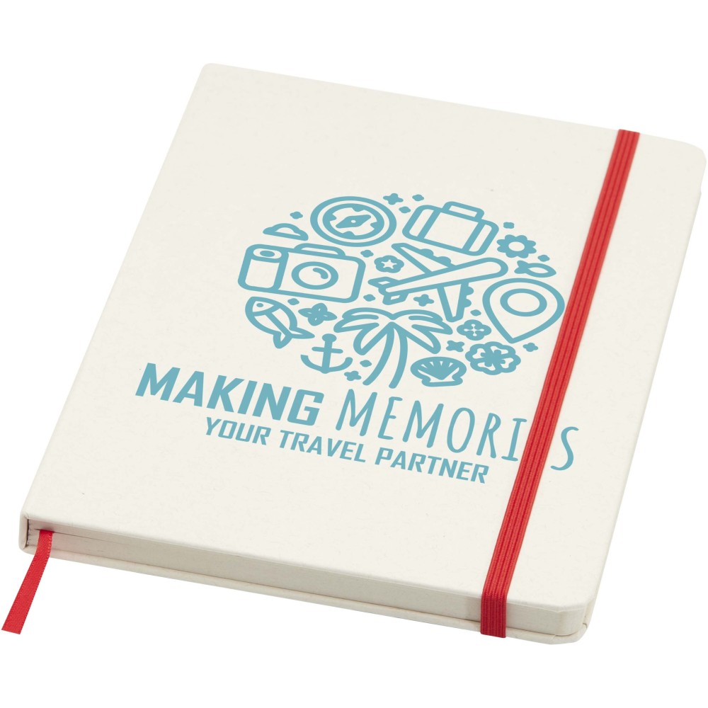 A Bass A5 keményfedeles jegyzetfüzet 80 vonalas, 80 g/m2 súlyú papírlapot tartalmaz, és újrahasznosított tejesdobozból készült. Emblémázás: Tamponnyomás, UV nyomtatás
