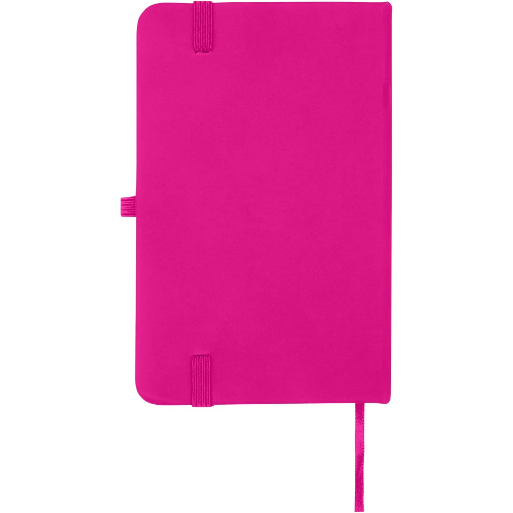 A Spectrum Plus A6 keményfedeles jegyzetfüzet lekerekített sarkokkal nemcsak az irodai mindennapok elengedhetetlen kelléke, hanem remek lehetőség márkád népszerűsítésére is. A jegyzetfüzet puha tapintású borítóval rendelkezik és 80 vonalas, krémszínű, 70 g/m2-es lapból áll, amely tökéletes gyors ötletek vagy hosszabb jegyzetek rögzítésére. A jegyzetfüzet tolltartó hurokkal, gumiszalagos záródással, könyvjelzővel és harmonikazsebbel van ellátva. Emblémázás: Tamponnyomás