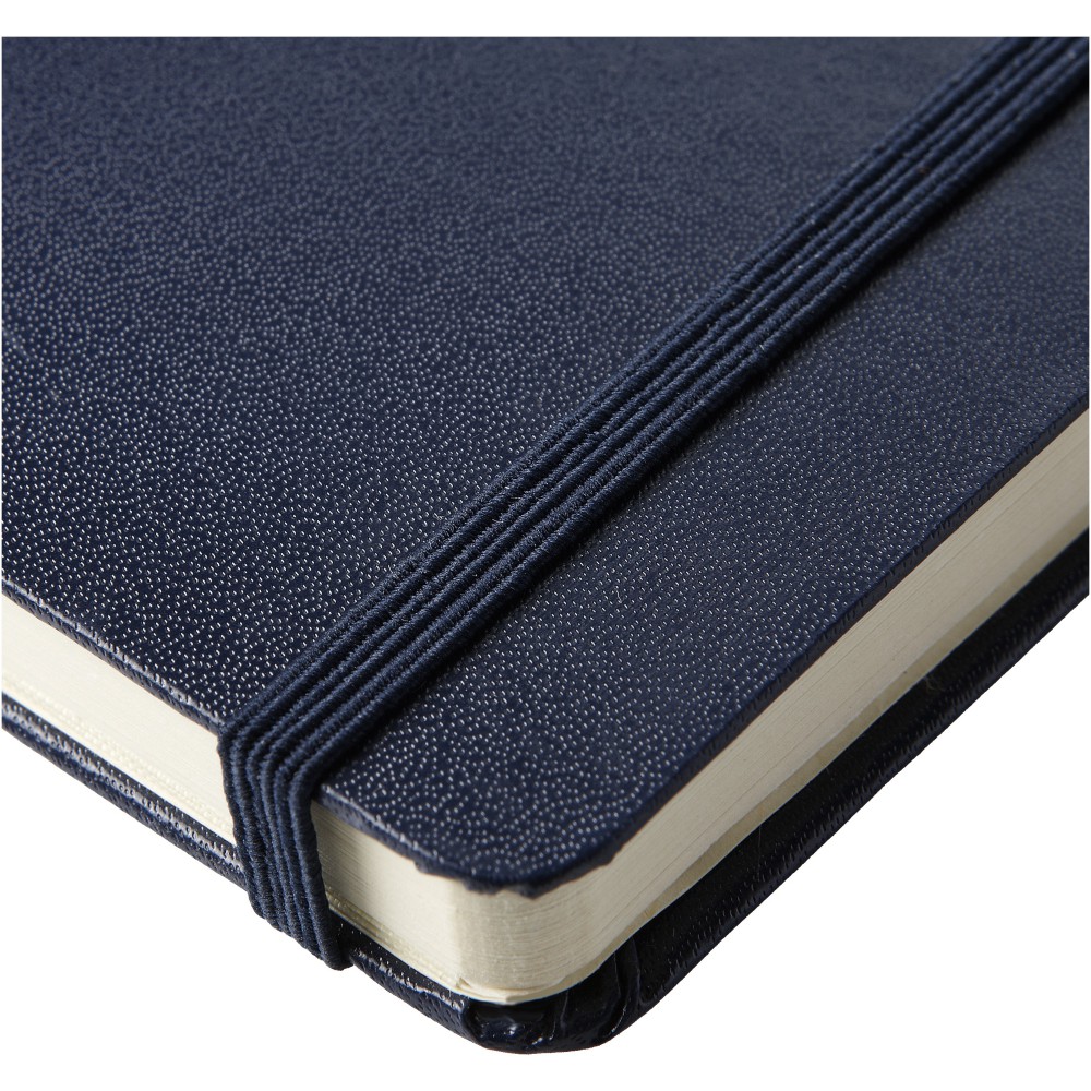 Ez az exkluzív kivitelű, klasszikus stílusú, keményfedeles, gumiszalaggal záródó, 80 lapos (80 g/m2), vonalas zsebkönyv (A5 méret) ideális jegyzetek készítéséhez és megosztásához. A hátoldalán kihúzható zsebbel a kisebb jegyzetek tárolásához. Journalbooks díszdobozban. Emblémázás: Szitanyomás, Tamponnyomás, UV nyomtatás