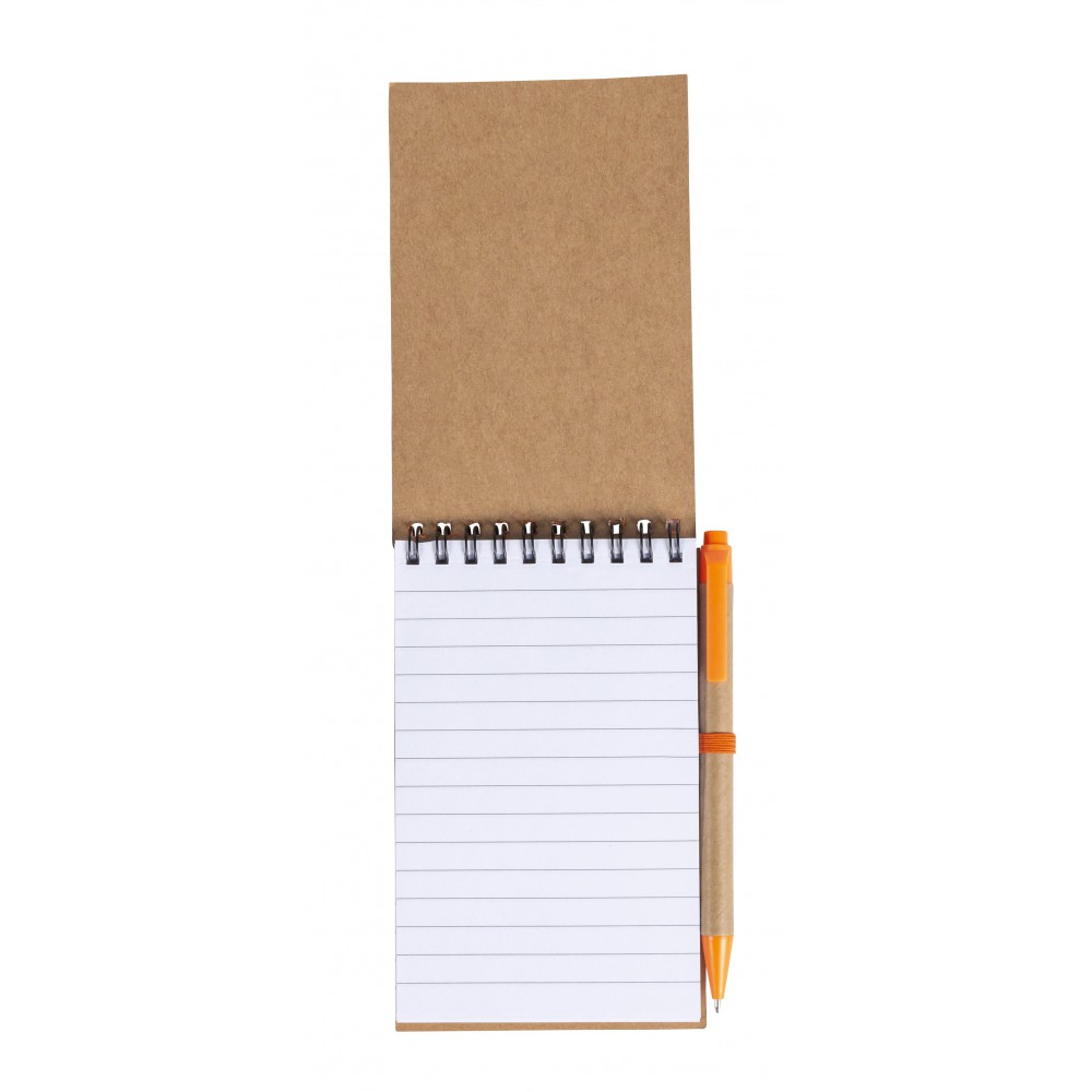 Spirálnotesz tollal, kék tollbetéttel, natúr/narancs