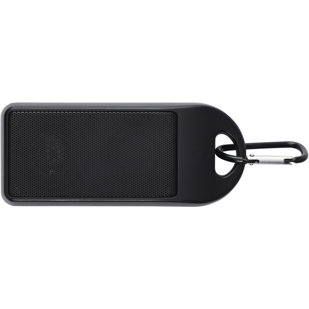 RCS újrahasznosított 3W-os Bluetooth hangszóró, amely zenét, podcastokat, stb. játszik le bármely Bluetooth kompatibilis eszközödről, így ideális társ minden alkalomhoz. A mellékelt karabinernek köszönhetően a hangszóró könnyen rögzíthető hátizsákodhoz, az IPX4 besorolás pedig megvédi az esőtől. Élvezd a zenét akár 1,5 órán keresztül maximális hangerőn a 300 mAh-s Li-ion akkumulátornak köszönhetően. A töltési idő 1,5 óra. Bluetooth 5.0 körülbelül 10 méteres működési hatótávolsággal. Használati útmutatóval, karabinerrel, 50 cm-es USB-A-C típusú töltőkábellel és 100%-ban újrahasznosított nátronpapír dobozba csomagolva szállítjuk. Újrahasznosított ABS műanyag. Emblémázás: Tamponnyomás