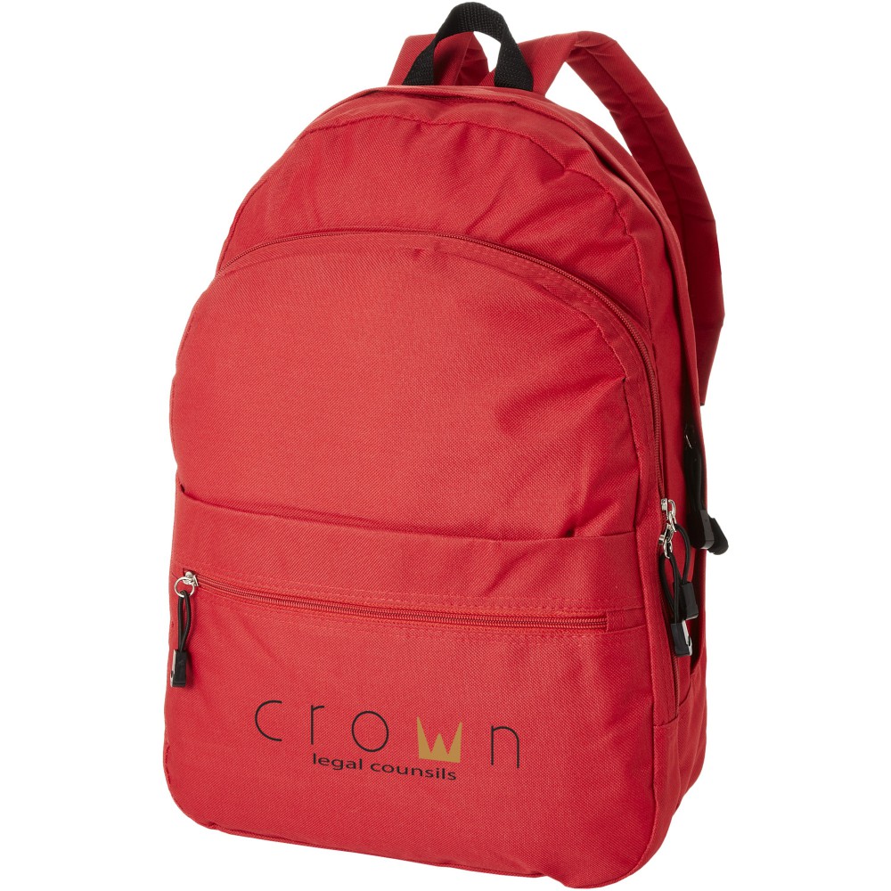 A kényelmes Trend hátizsák nyerő a promóciós hátizsákok között. A divatos kialakítású táska négy rekesszel rendelkezik: két cipzáras rekesszel, egy elülső cipzáras zsebbel és egy tépőzáras elülső zsebbel, így bőséges helyet kínál nagy és kis tárgyak tárolására egyaránt. A termék 600D poliészterből készült. Emblémázás: Hímzés, Szitanyomás
